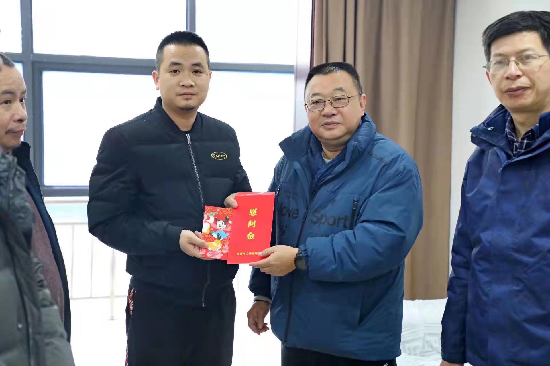 1月25日下午,市局党委委员、副局长郑磊,计划科科长徐飙来到江西省宜春公路建设集团有限公司有限公司慰问了困难党员卢磊、谢勇及困难职工李南村、高山,公司董事长彭家远、党总支书记韩晓明陪同慰问。